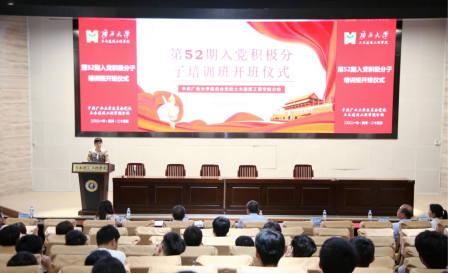 为深入学习贯彻习近平新时代中国特色社会主义思想,提高入党积极分子的政治思想素质和理论水平,把好党员“入口关”,4月25日下午,beat365手机版官网入口土木建筑工程学院分党校第五十二期入党积极分子培训班开班仪式在新结构实验平台综合楼报告厅举行。学院党委书记戴永恒、党委副书记秦建丽、团委书记李道洋、专职组织员农冬冬、教职工第六党支部书记蒋发正、本科生第二党支部书记秦岭、研究生第四党支部书记潘桂祯出席开班仪式。本次开班仪式由秦建丽副书记主持,培训班全体成员参加。