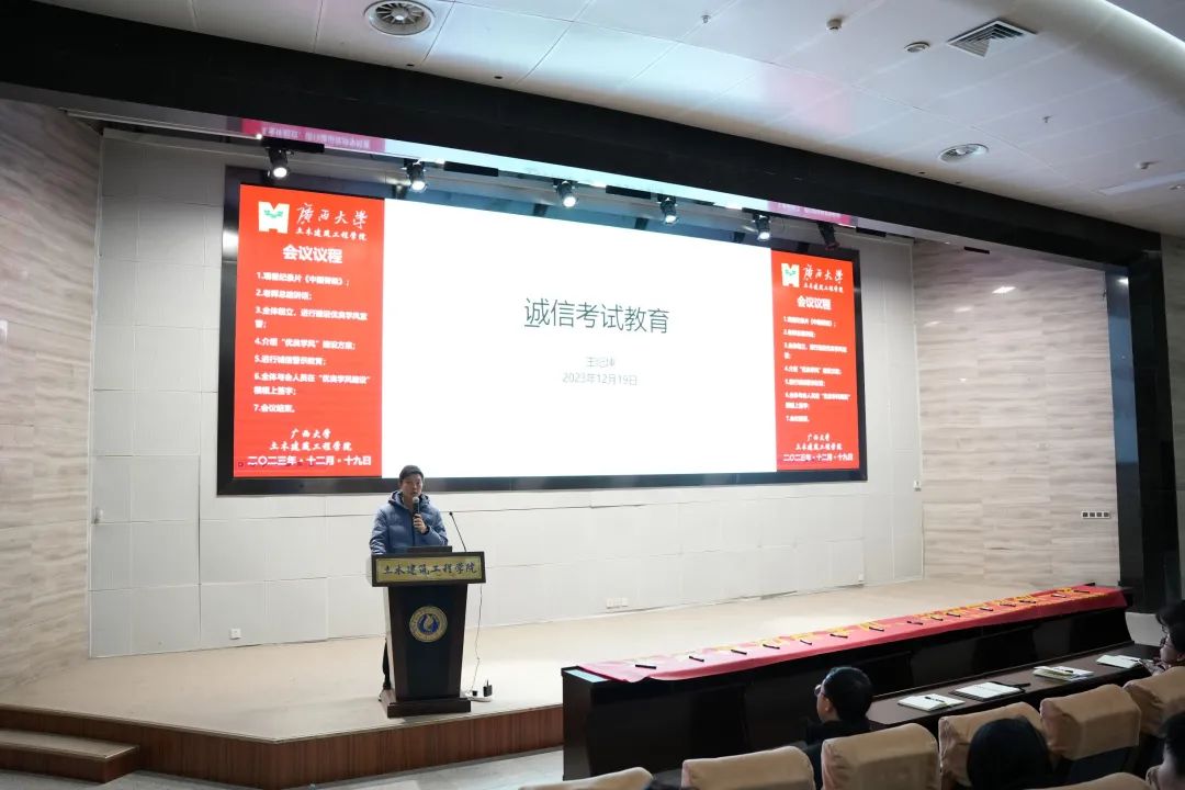 学院团委副书记王纪坤老师结合考试违纪案例进行诚信考试教育,强调既要重视学风,自觉遵守考试纪律,文明考风,同时心怀祖国,牢记誓词,做学术诚信的学生。