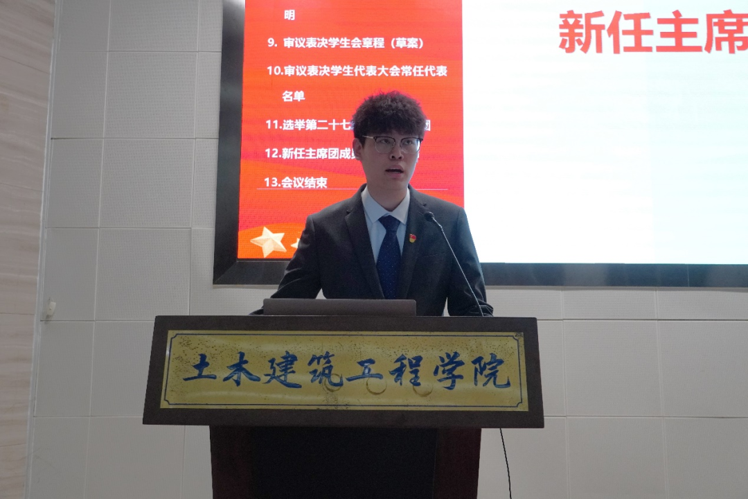新任学生会主席团代表高晨宇宣读倡议书