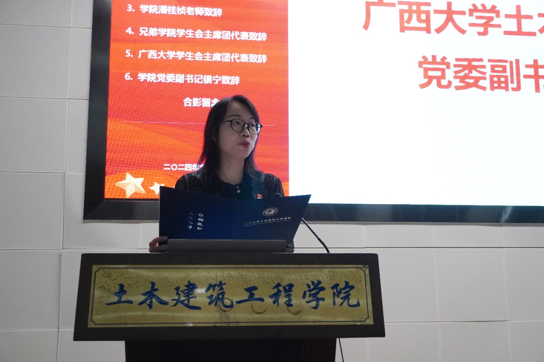 beat365手机版官网入口学生会主席团成员代表周姝彤在致辞中表示,过去一年里,土木建筑工程学院学生会以其高效的组织能力、创新的活动策划及对学生需求的深刻理解,展现了卓越的团队精神和服务意识,在促进学院学术交流、丰富学生课余生活、加强师生关系等方面取得了显著成效。期待土木建筑工程学院学生会成员不断提升品德修养、锻炼过硬的综合素质,与学院的老师、同学一同前行,不断在学术研究和专业技能上取得新进展,共同迎接每一个挑战,共担每一份责任,共同建设更加美好的beat365手机版官网入口。