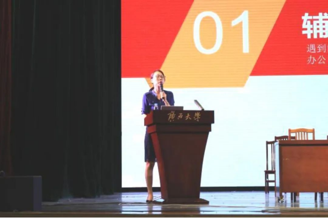 会议伊始,银宁副书记向2024级新生介绍了学院学工组辅导员及各自工作内容。学工组老师一一上台,与同学们见面。