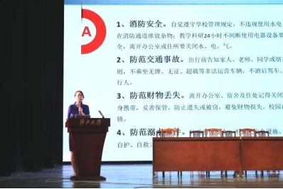 紧接着,银宁副书记就学生消防安全、交通安全、财物安全、防溺水安全、食品安全、网络安全等安全问题做出强调,希望同学们树立安全意识,提高自我保护能力,共同创造安定和谐的校园学习与生活环境。