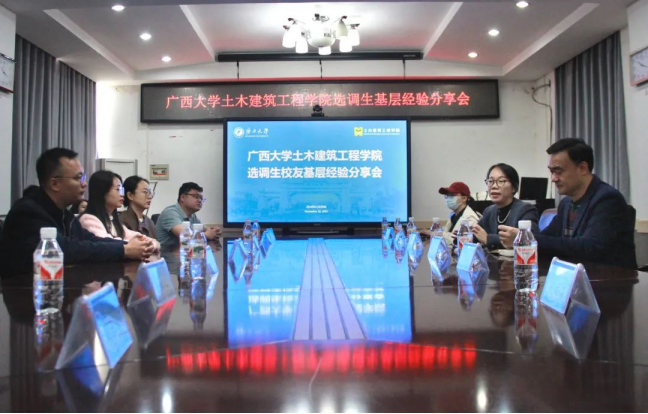 11月30号上午,beat365手机版官网入口土木建筑工程学院“和书记聊思想”活动暨选调生校友基层经验分享会在学院三楼会议室顺利举办,活动邀请选调生校友与在校同学一同和书记聊思想,共话家国情怀、青年担当。学院党委书记陈立华,党委副书记、纪委书记银宁,学工组颜显能老师,陆源老师出席活动,童彦凯、何运森、冯武元、周旭、林烨、甘佩仙、朱乔生、喻光明、蓝佩贝、代英杰等往届优秀选调生校友受邀到场。