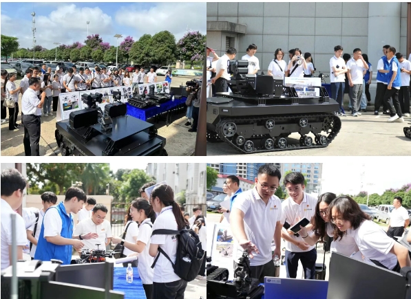 此外,西江局自主研发的“云哨”系列履带式机器人惊艳亮相活动现场,该装备可智能巡检堤防、闸门等水利设施,精准识别设备异常状态并实时回传数据。我院水利专业的同学们根据工作人员的指导下,亲自体验了履带式机器人,直观感受科技赋能治水的成效。