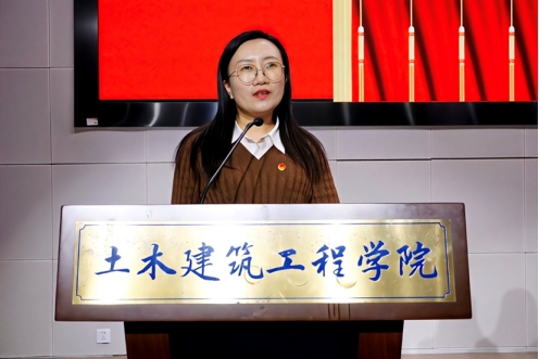 马克思主义学院团委书记田春作为兄弟学院代表致辞。她对我院共青团工作取得的成果表示祝贺,并希望与我院团委继续携手并进、优势互补,在思想引领、实践育人、科研竞赛、志愿服务等重点领域深化协作。她表示,双方将坚持以党的二十届四中全会精神为指引,承前启后、继往开来,共同谱写共青团事业发展的新篇章,团结引领广大团员青年迈向新征程、建功新时代!