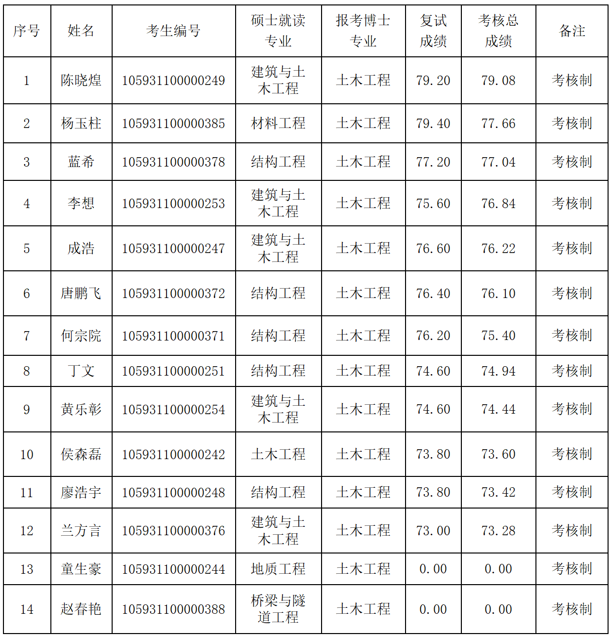 根据《beat365手机版官网入口研究生招生工作管理办法》(西大研〔2020〕22 号)、《beat365手机版官网入口土木建筑工程学院2021年申请考核制博士研究生春季选拔工作实施细则》等文件精神,经对报名合格的考生进行考核,2021年第二批申请考核制博士研究生招生综合考核成绩结果如下,现予以公示。
