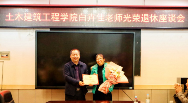 最后,戴永恒书记向白卉佳老师颁发光荣退休证书,陈立华副院长向白卉佳老师献上祝福鲜花,参会的同事们与白卉佳老师一起合影留念。(宁裕忠/文图 戴永恒/审核)