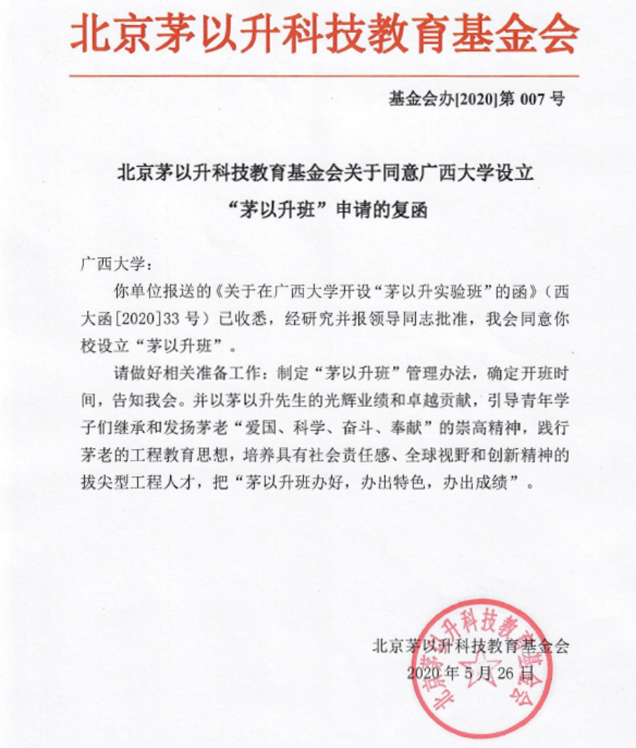 喜讯!近日,从茅以升科技教育基金会传来好消息,我校设立“茅以升班”的申请已经基金会审议通过!