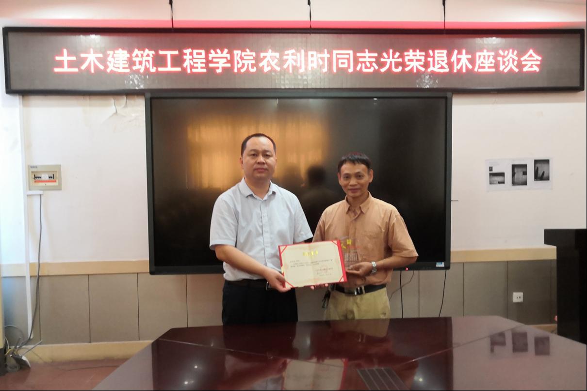 2020年7月22日上午,我院为2020年7月正式退休的农利时同志举办光荣退休座谈会。学院党委书记戴永恒及其他院领导出席座谈会,与农利时同志共事多年的同事们参加了座谈会。