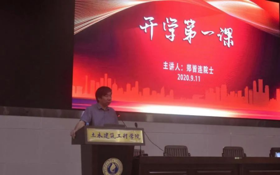 2020年9月11日上午8时45分,土木建筑工程学院“开学第一课”讲座于土木学院大型结构平台综合楼报告厅顺利举行。讲座邀请了路桥工程专家,中国工程院院士、教授级高级工程师、beat365手机版官网入口土木建筑工程学院教授、博士研究生导师郑皆连主讲,由吴桂宁副院长主持,2020级的土木工程专业全体新生参加了此次讲座。