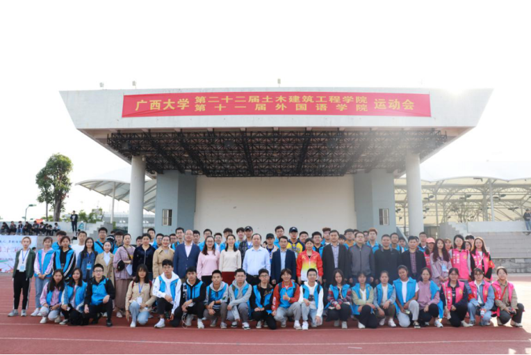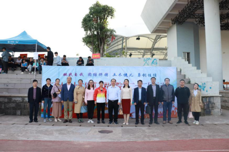 土木建筑工程学院党委书记戴永恒、党委副书记秦建丽、副院长陈立华、副院长安永辉、副院长宁裕忠、团委书记李道洋,外国语学院副院长白佳芬、团委书记王芳,中铁四院集团南宁勘察设计院有限公司工会副主席黄俊,以及各学院老师出席了院运会开幕式。