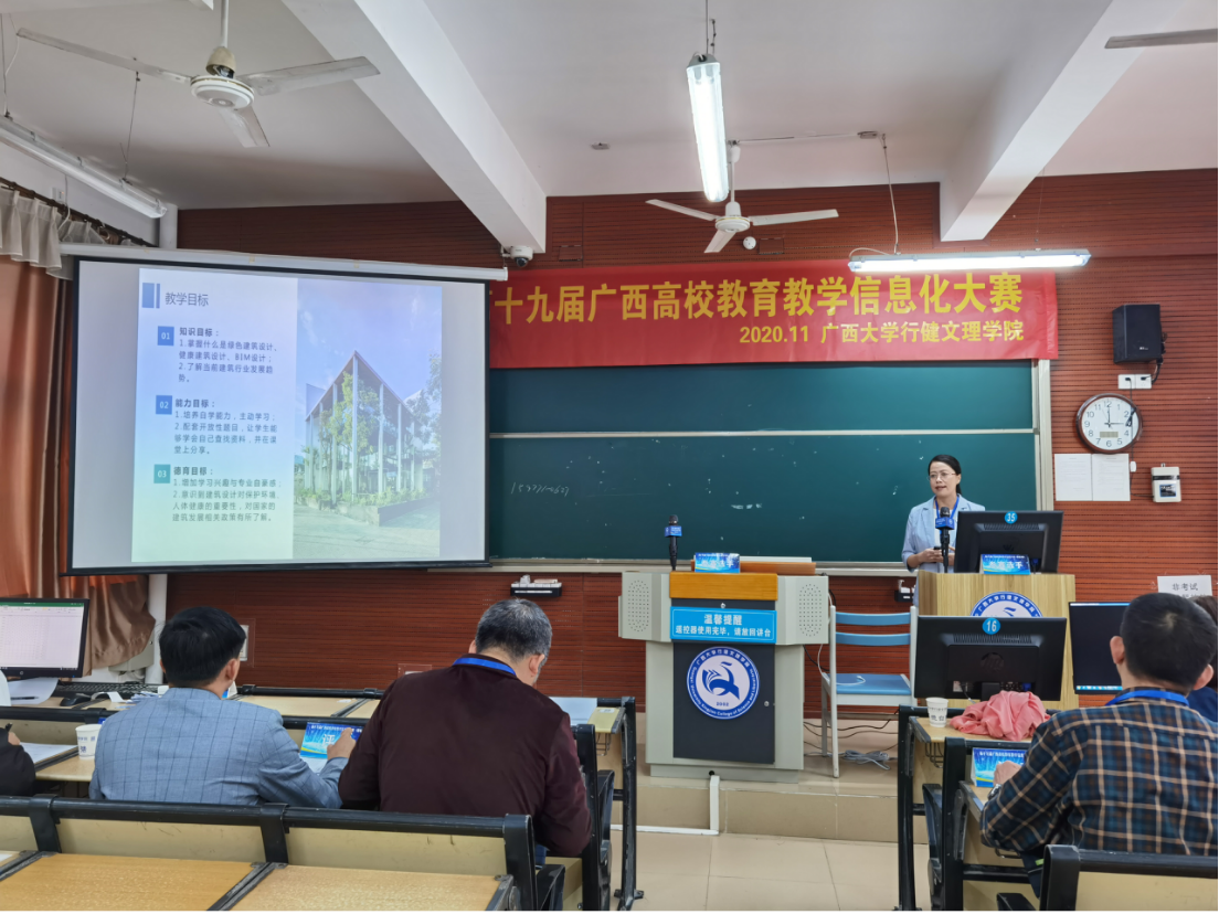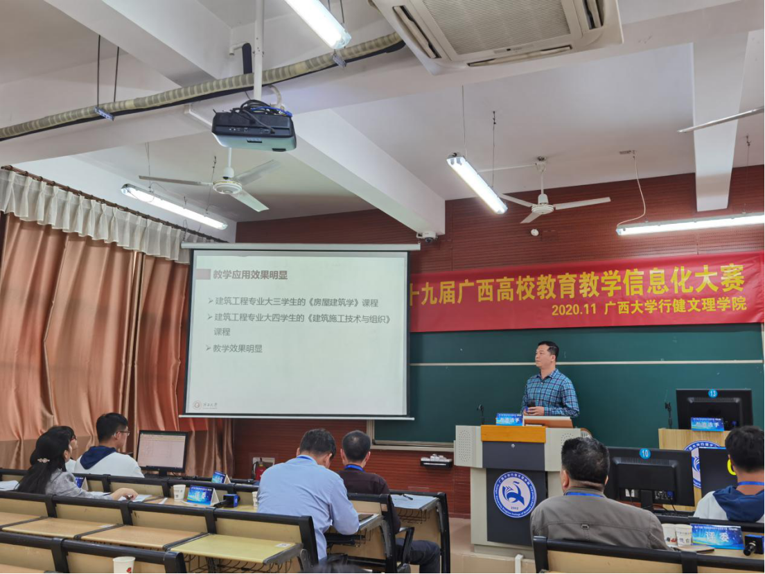为进一步促进高校教育教学与现代信息技术的深度融合,建设优质教育教学资源,提升高校课堂教学的信息技术应用水平,2020年11月14—15日,由广西壮族自治区教育厅主办,广西高等教育学会高校教育技术专业委员会承办,广西大学行健文理学院协办的第十九届广西高校教育教学信息化大赛决赛在广西大学行健文理学院隆重举行。