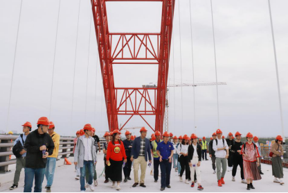 (登上桥面参观学习)