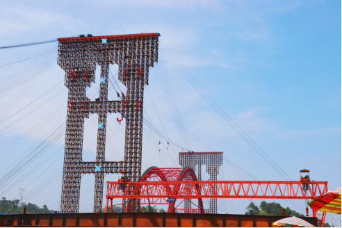随后,在项目部周总工带领下,调研小组成员参观了钢板加工场、塔架等施工场地,深入学习了钢箱梁模板预制、塔架搭设等具体施工、控制工艺。参观过程中,调研小组成员纷纷提出对大桥建设过程存在的疑问,并与总工积极地交流学习。