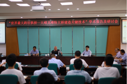 7月5日,“世界最大跨径拱桥--天峨龙滩特大桥建造关键技术”学术报告及研讨会在我校君武楼第二会议室举行,中国工程院院士、我院郑皆连教授围绕在建世界最大跨径拱桥—天峨龙滩特大桥建造关键技术进行了主旨学术报告。校长赵跃宇出席并讲话。