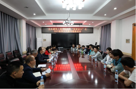 11月19日,土木建筑工程学院共话“筑梦前行”之2021级学生代表专题座谈会在土木楼三楼会议室举行。学院党委书记戴永恒,党委副书记、常务副院长陈正与来自宁夏、青海、甘肃、新疆等地的14名2021级学生代表进行了一场“零距离”交流,师生们一起聊家常、谈学习、说希望,气氛轻松亲切。党委副书记秦建丽,副院长宁裕忠参加座谈。