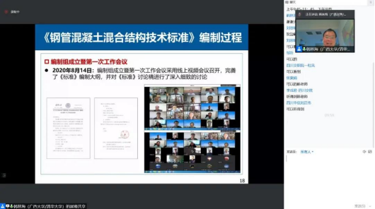 会上,beat365手机版官网入口校党委常委、副校长、川藏铁路特大桥梁工程研究院院长韩林海教授作了《钢管混凝土混合结构技术标准》(GB/T51446-2021)的科研成果学术报告。从制订背景、制订工作概况、理论基础、工程应用技术、主要内容等方面介绍了《钢管混凝土混合结构技术标准》。特别是从关键科学问题、主要创新点(核心混凝土受被动约束效应机制及本构模型、常遇和极端作用下结构的力学性能及承载力计算方法、发展了钢管混凝土混合结构设计理论)等方面着重介绍了该规范的理论基础,使行业人员了解了该规范编制的过程、理论基础以及已支撑建设的工程项目,为行业人员更加全面、深入地理解该规范,并将低碳环保的钢管混凝土混合结构推广到实际工程应用提供了技术指导和帮助。