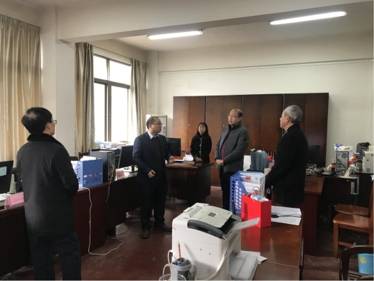 为全面掌握我院新学期开学工作的准备和运行情况,使新学期有一个良好的开端,2月14日上午,学院党委书记陈正、副院长宁裕忠、行政办公室主任周鹭一行,先后到我院行政办公室、学工组、教学办公室、研究生办公室和实验中心等进行了全面的现场检查。