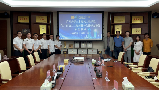 5月14日下午,beat365手机版官网入口土木建筑工程学院与广西建工集团第二建筑工程有限责任公司开展“石墨烯增强混凝土技术”第一期合作研究课题启动仪式。