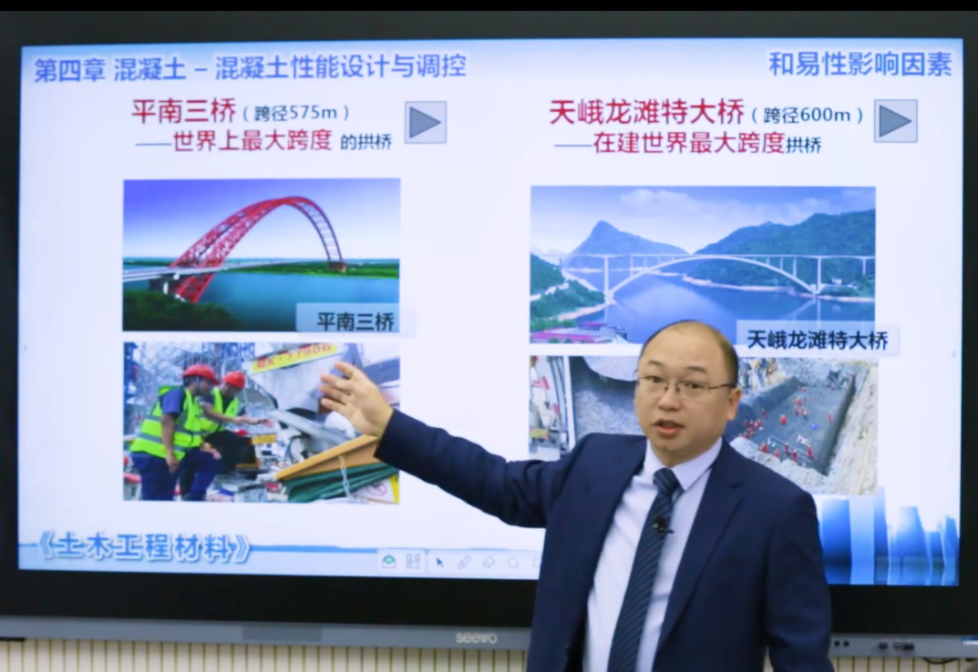 高等教师教学创新大赛旨在通过比赛促进教师教育教学理念与实践的创新与变革,分别从课堂实录、教学创新成果报告及赛场答辩三个环节进行综合评分。该比赛不仅是教师教学技能的比拼,更是先进教学理念、深厚教学理论、创新教学模式和革新教学方法的综合体现。《土木工程材料》教学团队坚持“以学生为中心”,秉持“工程引领、全程互动、持续改进”的教学创新理念,实施“课程设问导入—要点精确分析—难点生动剖析—实例互动讨论”四位一体的教学模式,将课程思政、国家战略工程、区域行业需求有机融入课堂教学过程,结合现代教学信息技术实施翻转课堂,形成面向区域建设的教学内容、教学组织、教学资源和教学评价的多元协同,有效实现了教学创新。
