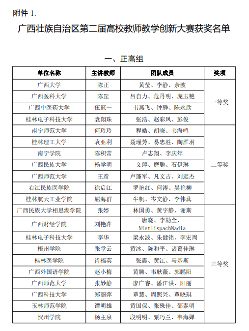 近日,广西高等教育学会公布了广西壮族自治区第二届高校教师教学创新大赛获奖名单,我院党委书记陈正教授带领的《土木工程材料》教学团队获正高组一等奖,并获推荐参加全国竞赛。