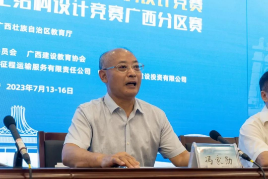 beat365手机版官网入口副校长冯家勋致开幕辞。冯家勋首先代表学校向竞赛组委会和评审专家表示感谢,向各代表队表示欢迎。他表示,作为承办单位,本次大赛是自治区住建厅和教育厅对我校土木工程世界一流学科建设工作的充分肯定和支持。他指出,结构设计竞赛是面向区内设置土建类专业院校大学生的一项极富创造性、挑战性的科技竞赛,也是我区土建类学科培养学生创新意识、合作精神和工程实践能力的最高水平的学科竞赛,是土建类学科高等院校开展创新教育和实践教育改革、加强高校与企业之间联系以及推动学科创新活动的交流平台。本次大赛以“桥”为题,将全面考验各位参赛选手在桥梁结构上的创新意识、设计技能、实践动手能力、合作精神等综合素质,更是以“桥”为媒,丰富beat365手机版官网入口校园科技学术文化氛围,促进了我们广西区内高校间以及高校与企业间的相互交流、学习、研讨。他希望同学们在竞赛中赛出风格,赛出水平,期待各位参赛选手在比赛中得到锻炼成长,在beat365手机版官网入口这座历史悠久、美丽温馨的校园里留下美好的记忆。