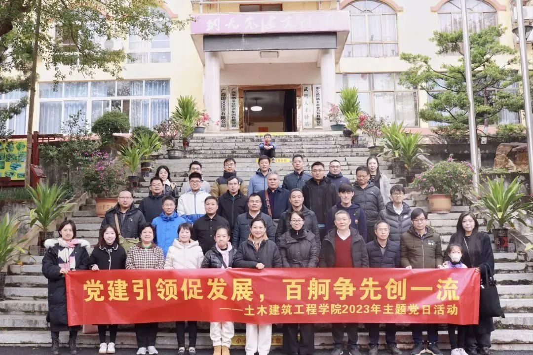 为深入学习贯彻习近平新时代中国特色社会主义思想,12月17日下午,土木建筑工程学院党委组织开展“党建引领促发展,百舸争先创一流”主题党日活动。学院党委副书记银宁,副院长常岩军及党员教师代表40余人前往武鸣区纳天党建文化园进行参观学习。