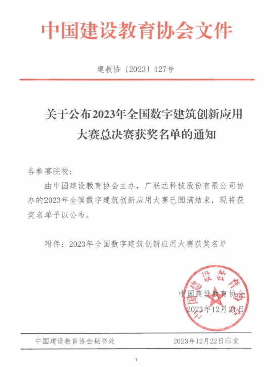 【喜讯】我院参赛队伍在2023年全国数字建筑创新应用大赛喜获佳绩