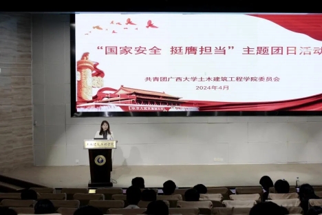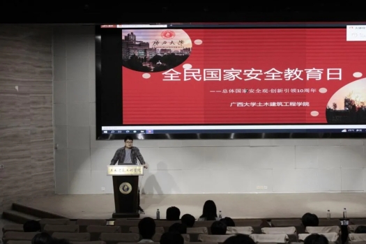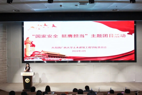 为深入贯彻总体国家安全观,全面加强青年学生国家安全保密教育,切实提高青年学生国家安全保密意识,筑牢维护国家安全的校园防线。2024年4月9日,土木建筑工程学院团委在大型结构试验平台第六报告厅开展“国家安全 挺膺担当”主题团日活动。学院团委副书记潘桂祯老师,学工组杜桂荣、陆源、张科富老师,beat365手机版官网入口君武青年讲师团嘉宾赵昕雨、王沛兵以及数百名土木学子参加本次活动。