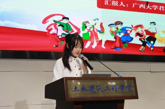 会议伊始,beat365手机版官网入口君武青年讲师团嘉宾赵昕雨作了题为《让民族团结之花绽放在中华大地》的宣讲,她的宣讲围绕“走进历史——了解中华民族共同体”“走过十年——广西树立民族团结工作典范”“走近身边——青年助力民族复兴”三个篇章展开,她提出,作为土木学院的学生,不仅要关注专业知识和技能的学习,更要关注如何将个人的成长与国家的发展、民族的团结紧密结合起来。工匠精神代表着一种精益求精、追求卓越的精神状态,是青年学生应该大力发扬和传承的宝贵财富。