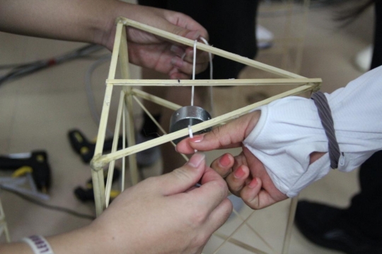 参赛选手为结构增加负重