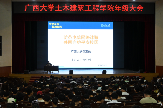 为增强我院全体学生预防、识别和应对电信网络诈骗的能力,营造“人人识诈、人人反诈”的良好氛围,筑牢校园反诈防火墙。2024年8月27日下午,土木建筑工程学院在学校大礼堂开展院开展2024年秋季学期防范电信网络诈骗宣传教育活动。活动由学院党委副书记银宁主持,学院团委书记潘桂祯、学工组谢雨真、陆源老师以及各年级学生到场参加。