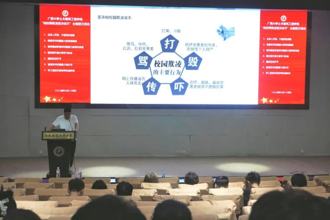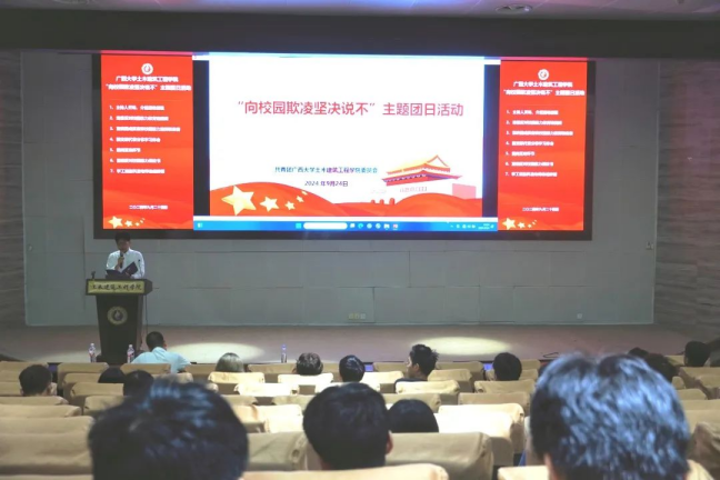为了切实增强学生的自我保护意识、提高抵制校园欺凌的能力,营造安全、和谐的校园氛围,我院于9月24日下午在大型结构试验研究平台第六报告厅开展了“向校园欺凌坚决说不”主题团日活动。此次团日活动由我院学工组张科富老师主持。