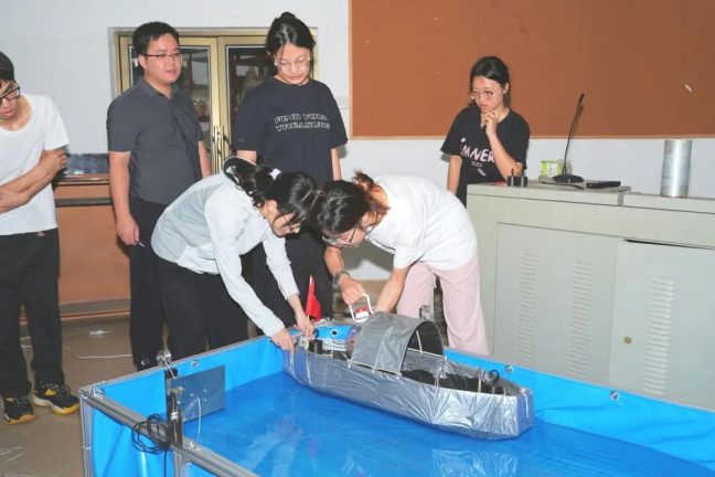 在加载试验中,参赛者们紧张而专注地进行模型的载重与航行测试。随着载重的不断增加,赛场上的气氛愈发紧张。每当一个模型成功通过加载测试,现场都会爆发出热烈的掌声和欢呼声。