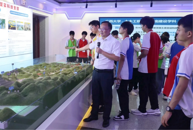 6月26日下午,香港中学生广西研学交流团(以下简称“交流团”)一行27人到访我院开展交流,实地参观我院大型结构试验研究平台,由我院副院长余波教授接待。
