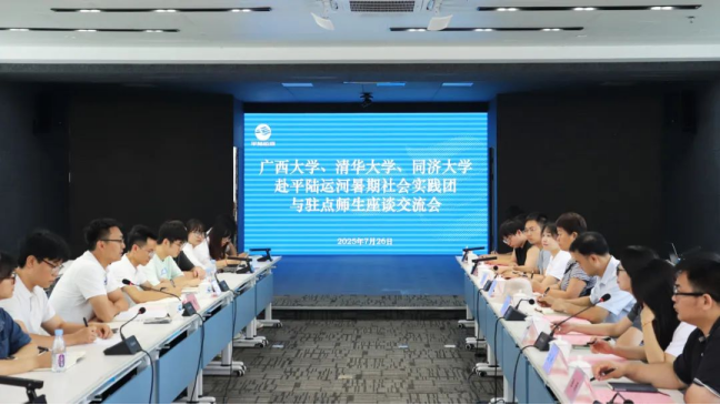 7月26日,我院团委联合beat365手机版官网入口海洋学院、清华大学、同济大学组建的“青春赋能世纪通途,匠心筑梦向海新程”暑期社会实践团,赴平陆运河与我院驻点师生开展座谈交流。学院党委书记陈立华、党委副书记银宁、副院长郭晓、团委书记潘桂祯、团委副书记陆源,以及驻点师生代表、实践团30余名成员共同参会,围绕运河建设、技术创新、青年担当展开深入交流。