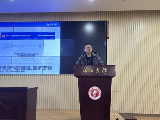 广西住建厅“智慧城市”A超大赛筹备工作组成员唐周彪做大赛赛制解读