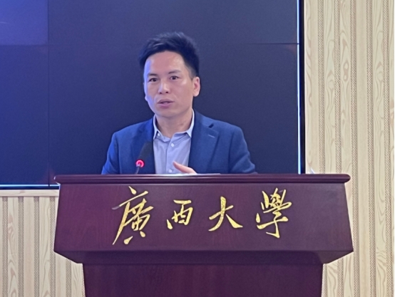 随后,广西壮族自治区住房和城乡建设厅“智慧城市”A超大赛筹备工作组成员、高级工程师唐周彪,作《AI赋能千行百业超级联赛(A超)“智慧城市”建设创新应用大赛高校赛道》申报要求与评审标准的详细解读。他围绕大赛背景、赛道设置、组队要求、申报材料填写注意事项及评审标准逐项说明,为参赛师生明确了备赛方向。