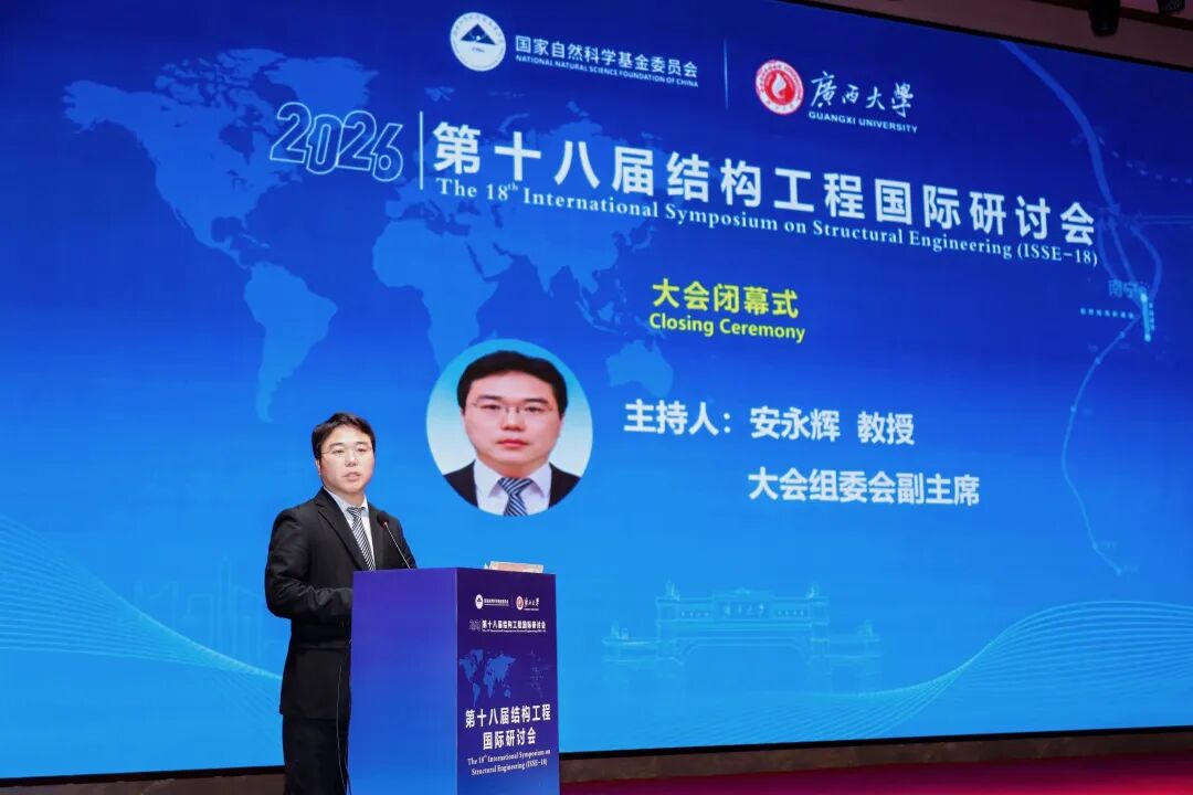 2026年1月30日至2月1日,第十八届结构工程国际研讨会(ISSE-18)在广西南宁成功举办。本届大会由国家自然科学基金委员会指导,beat365手机版官网入口承办,包括16位院士等近200位国家级人才在内的650名专家学者参加会议。