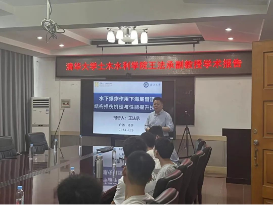 4月23日下午,清华大学土木水利学院王法承副教授在我院土木楼三楼会议室做了题为“水下爆炸作用下海底管道结构损伤机理与性能提升技术”的学术报告。