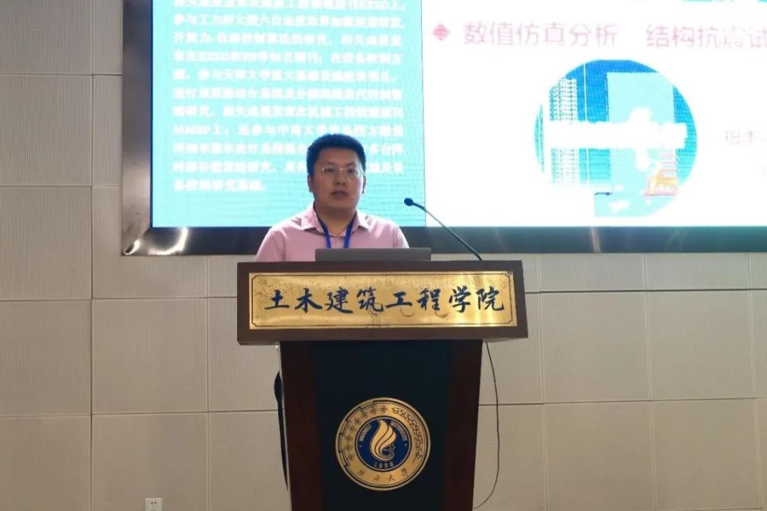清华大学博士后田英鹏作了题为“复杂动力边界协调混合试验技术方法研究”的学术报告。田英鹏博士后以“新型试验技术新方向:复杂编辑混合试验技术”为背景,指出了工程结构大型化与复杂化中抗震安全面临严峻挑战,以此引出了其进行的“六自由度力-位移混合边界条件试验研究”。此外,田英鹏希望基于此研究,开发具有可编程的柔性控制器。