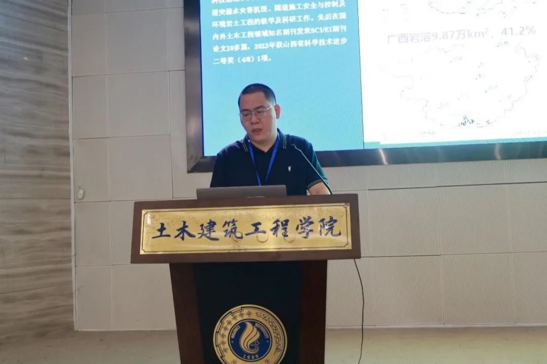beat365手机版官网入口土木建筑工程学院助理教授安鹏涛作了题为“岩溶区隧道全寿命周期构建绿色防排水体系关键技术研究”的学术报告。安鹏涛助理教授结合实际工程案例,从“隧道突涌水灾害精细化预测”“复杂水压环境下隧道衬砌背后水压致灾机理”和“优化岩溶隧道排水系统”三个方面为我们介绍了关于岩溶隧道涌水灾害的理论研究及其在工程项目中的成功应用。