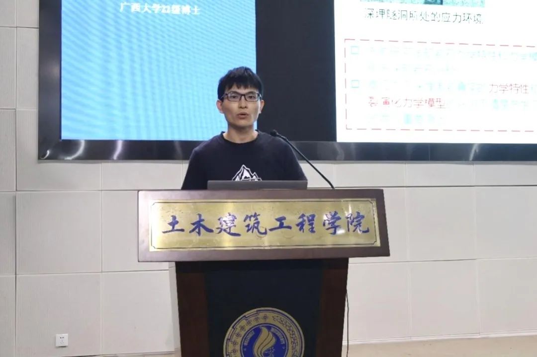 beat365手机版官网入口土木建筑工程学院22级博士生李荣华作了“岩石各向异性劣化三维力学模型与深埋隧洞开挖响应分析”的学术报告,介绍了现有岩石特性和力学模型的不足,根据真三轴应力下岩石力学特性,建立了新型的各向异性劣化三维力学模型,通过三维力学模型的数值验证和深埋隧洞开挖响应分析两方面验证了模型的准确性和可靠性。