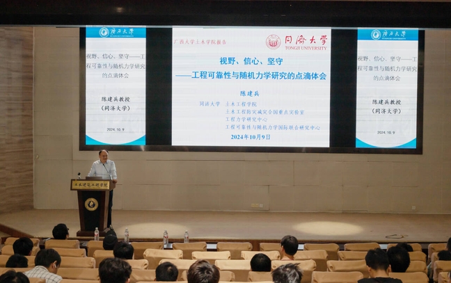 10月9日下午,同济大学陈建兵教授在我院大型结构试验研究平台第六报告厅作了题为“视野、信心、坚守---工程可靠性与随机力学研究的点滴体会”的学术报告,报告会由我院罗丹旎副教授主持。