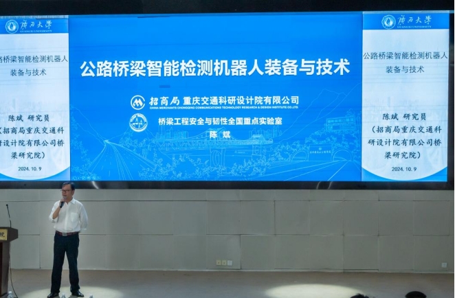 10月9日下午,招商局重庆交通科研设计院有限公司桥梁研究院陈斌研究员在我院大型结构试验研究平台第六报告厅作了题为“公路桥梁智能检测机器人装备与技术”的学术报告,本次报告由我院罗丹旎副教授主持。