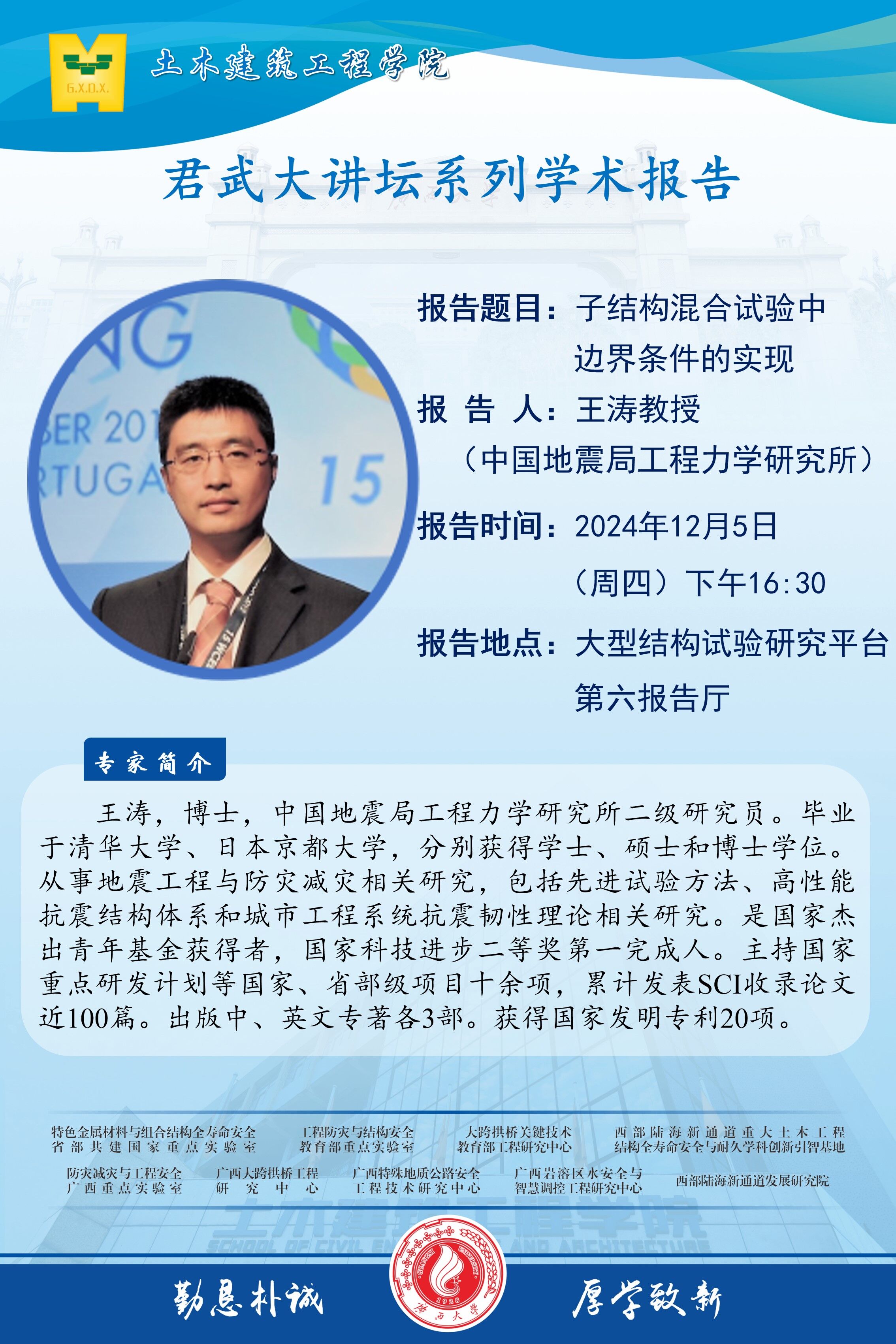 【上一条】吴斌教授学术报告:工程结构混合试验研究与应用进展