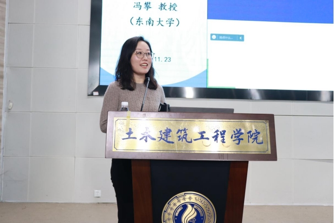 11月23日下午,东南大学冯攀教授在我院大型结构试验研究平台第六报告厅作了题为“混凝土材料低碳路径探索”的学术报告。报告会由我校党委常委、副校长肖建庄教授主持。