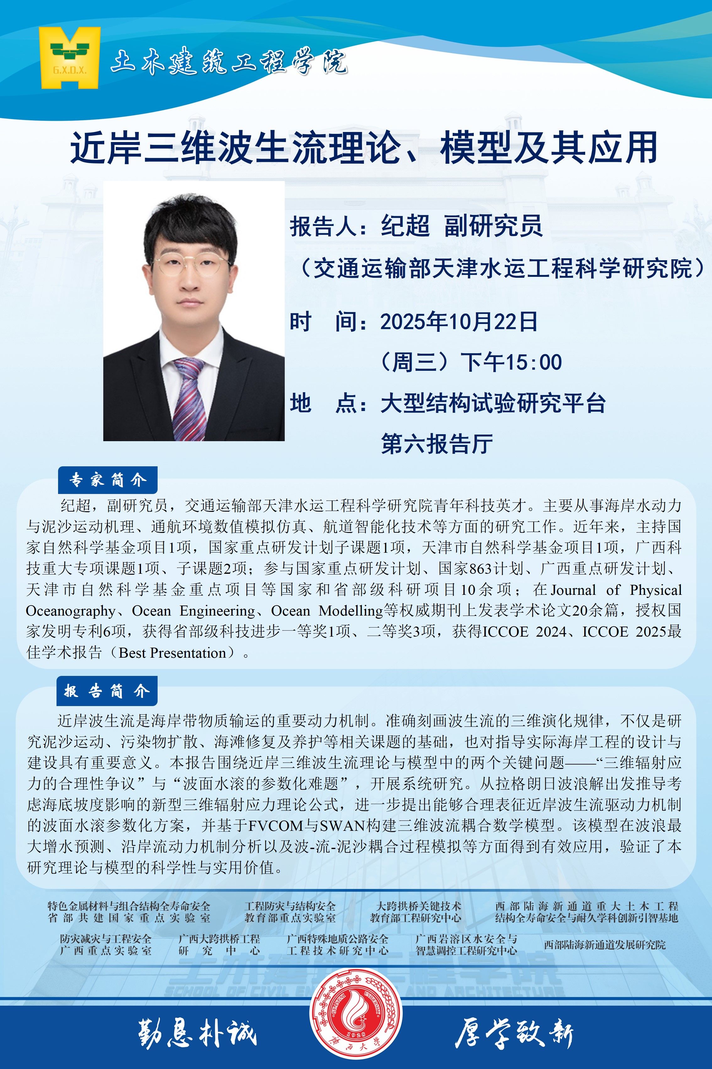 【上一条】姚忠达教授学术报告:车辆扫描法在桥梁频率监测之应用