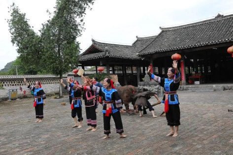 寻“影”乡村,在一曲一舞间寻民族乡韵。“新中国成立后像富川——恭城、梧州——八步、平乐——钟山——八步等公路偏离了福溪村。”起初在交通上的劣势使得福溪村处于被边缘化的状态,在一定程度上减少了福溪村的人流数量,降低了人流冲击,对福溪村的文化与生态环境在客观上起了一定的保护作用。调研团在村中发现,福溪村长期以来承载有瑶锦、瑶歌等民间传统文化,有古色古香的编织刺绣工艺,有桂剧、京剧与祁剧等戏剧形式,有锣鼓、京胡和二胡等传统民乐。文化是乡村振兴的精神基础,艺术是凝聚振兴力量的重要载体。用艺术塑造村庄风貌、激发乡村内在潜能,不仅可以实现乡村文化振兴,也能带动乡村经济发展。